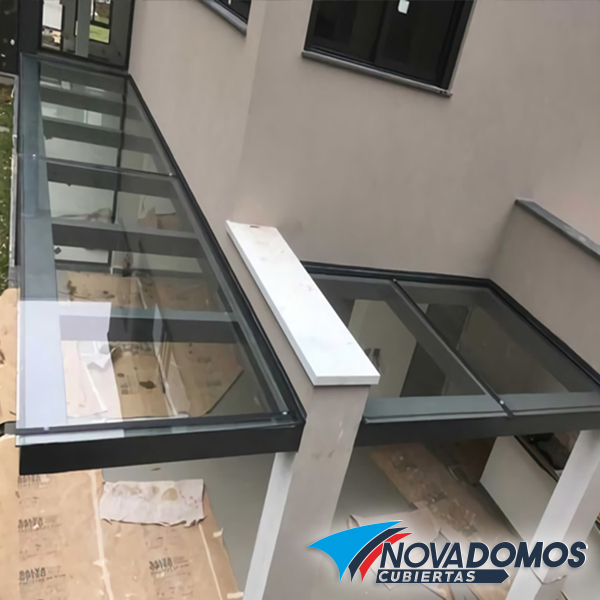 Ofrecemos el servicio de suministro e instalación de cubiertas de Vidrio Templado con estructura de acero, este tipo de cubiertas es de lo más estético para su uso en áreas a la vista.